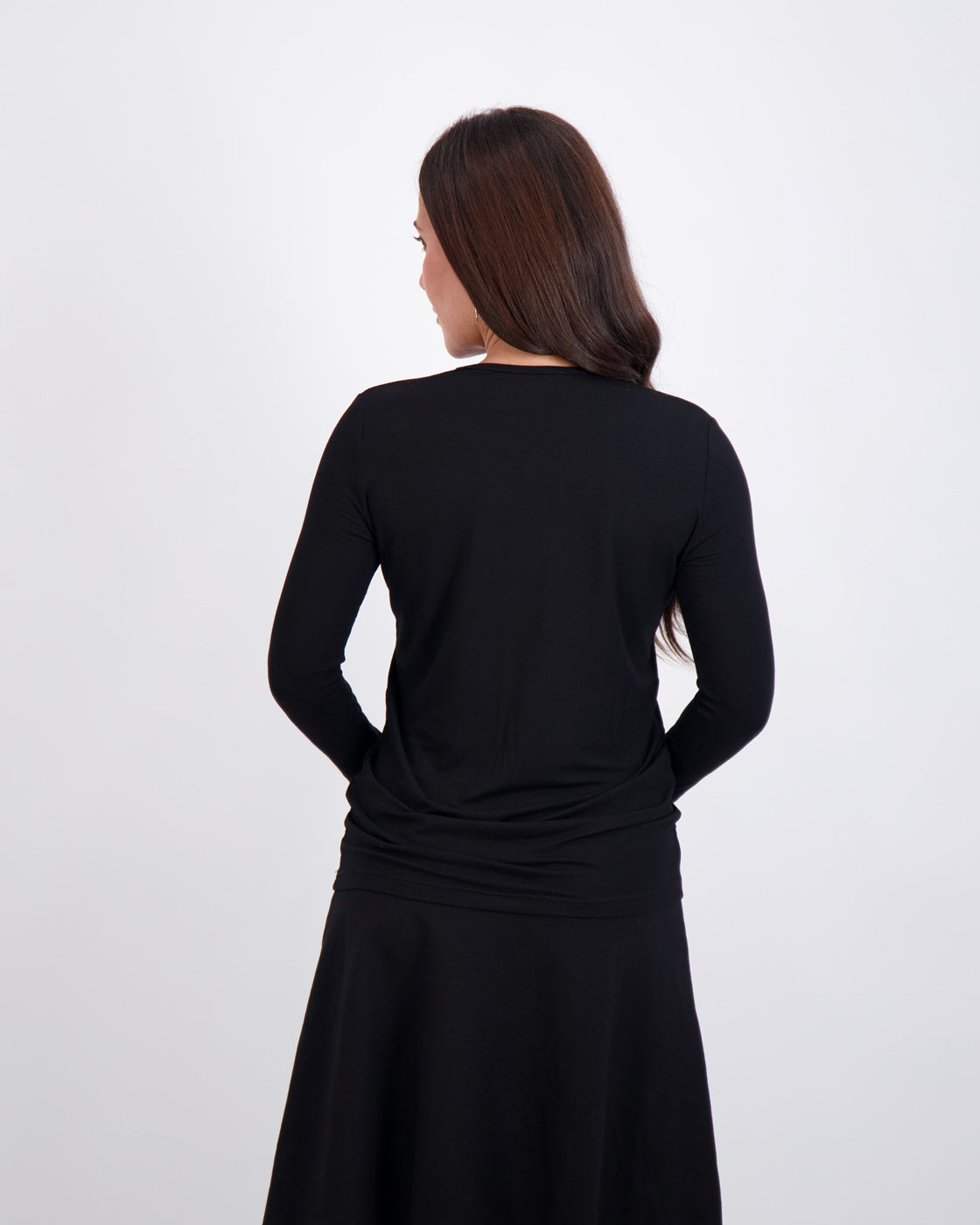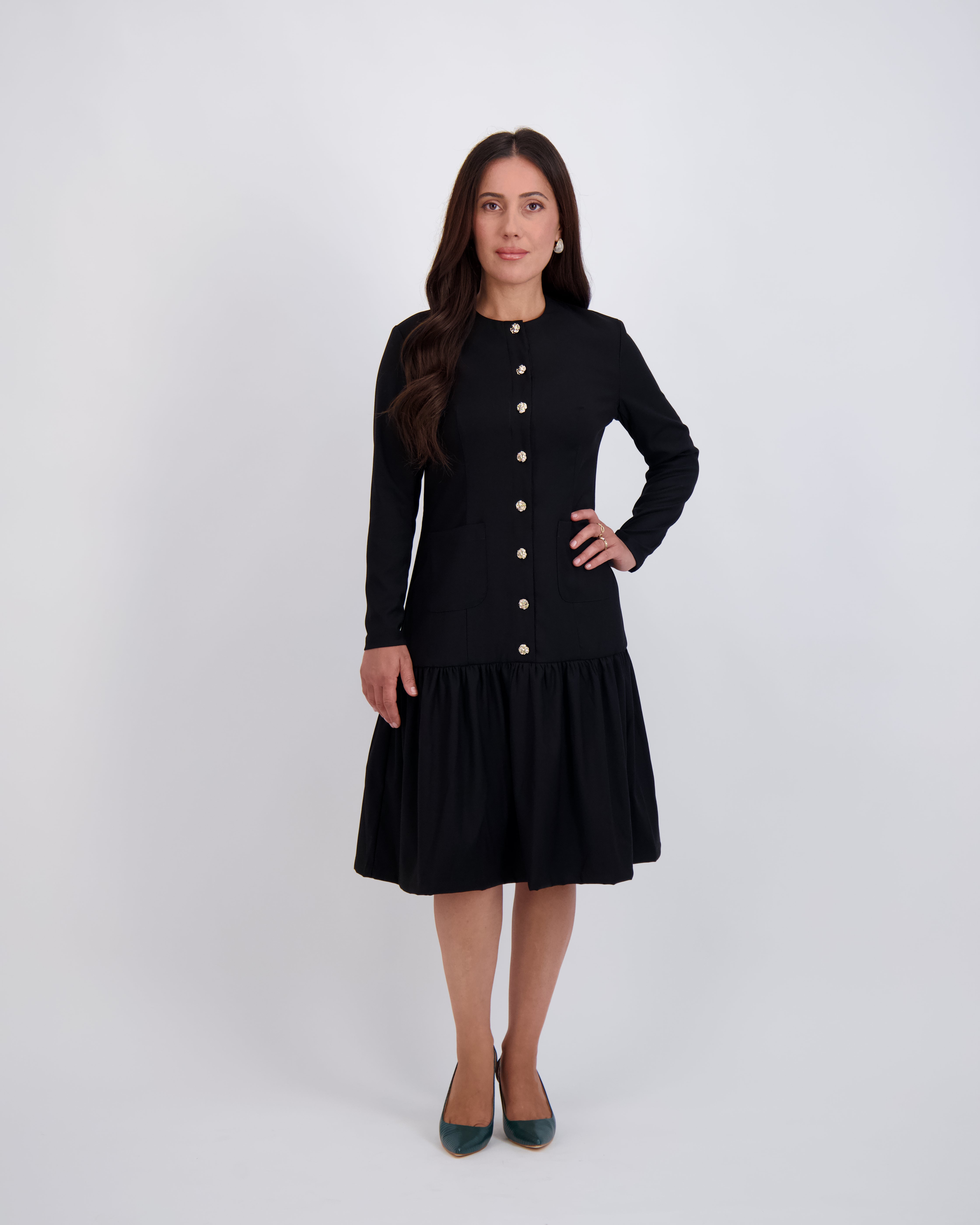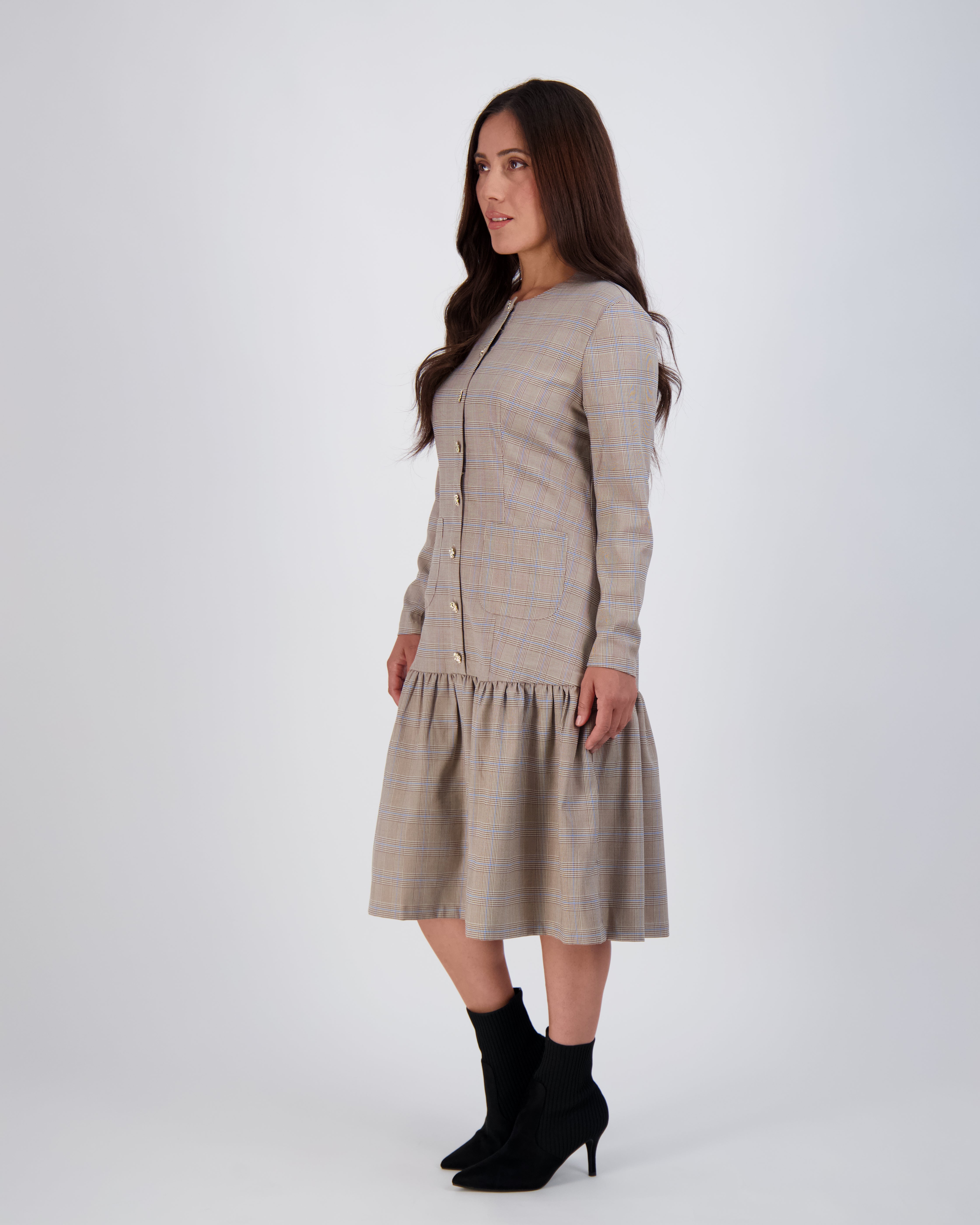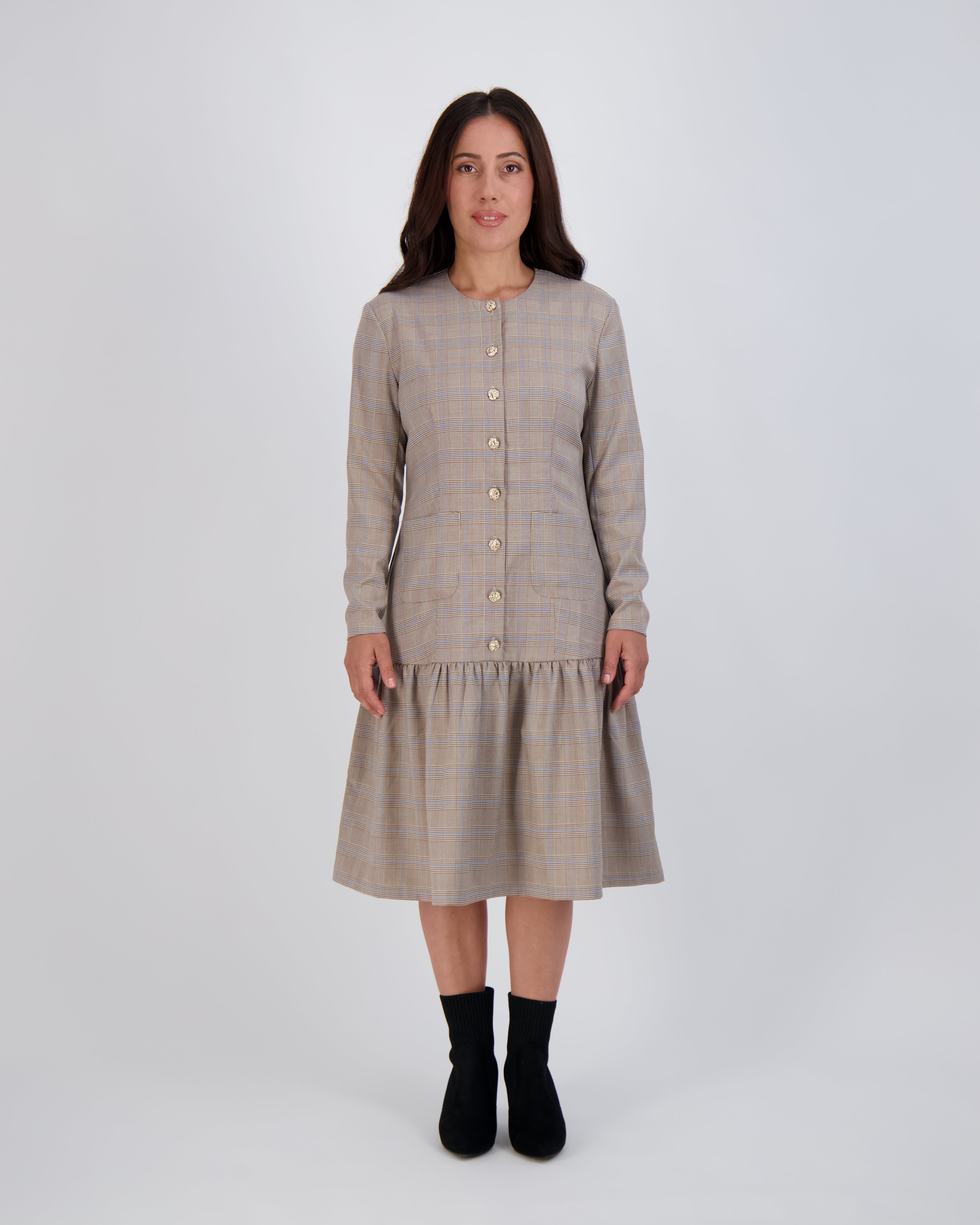 Modest, petite fashion, styled to fit from shoulder to hem.