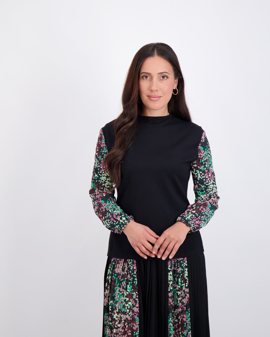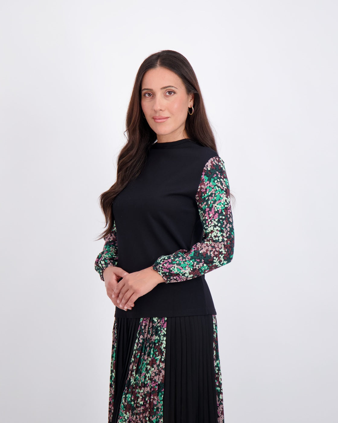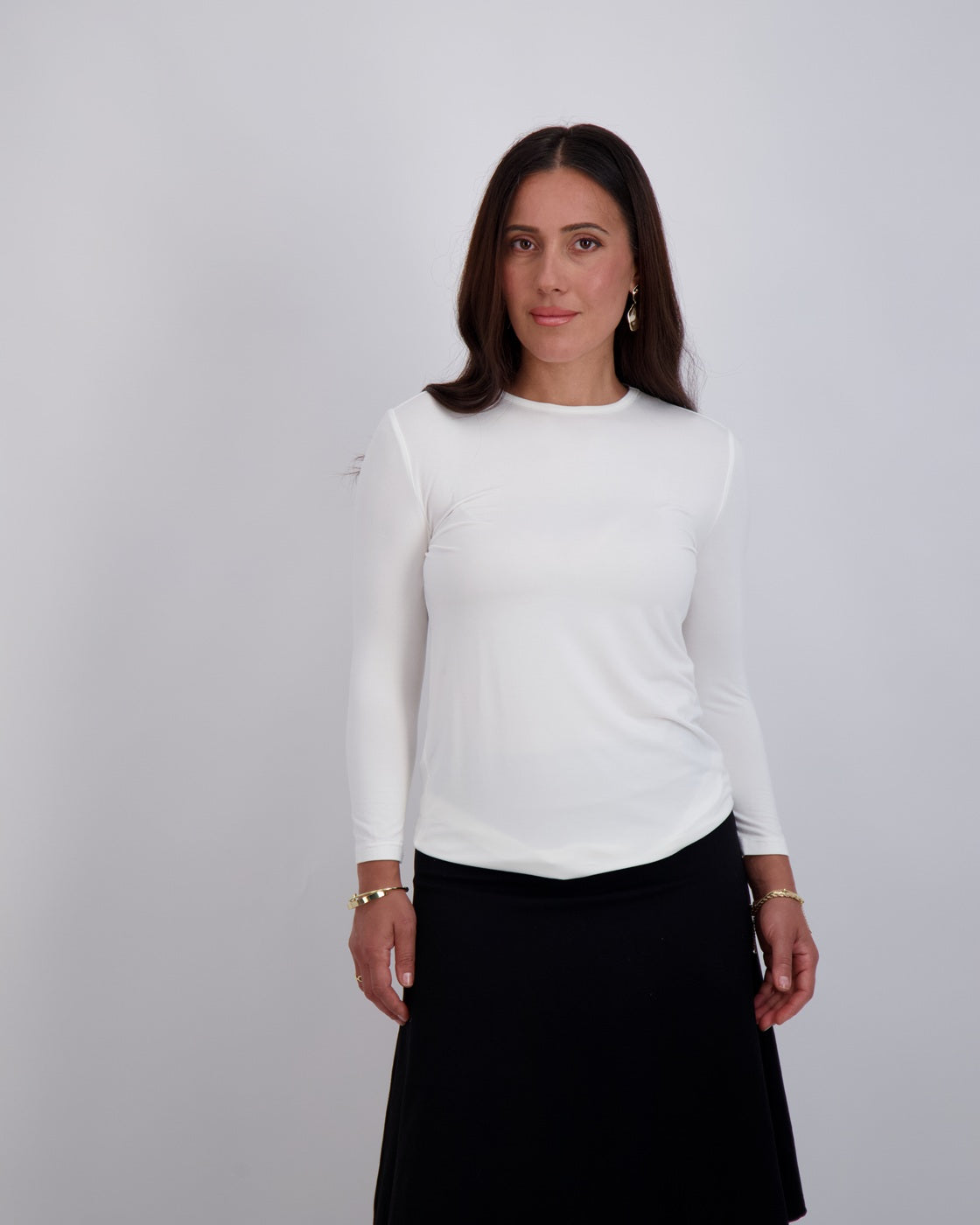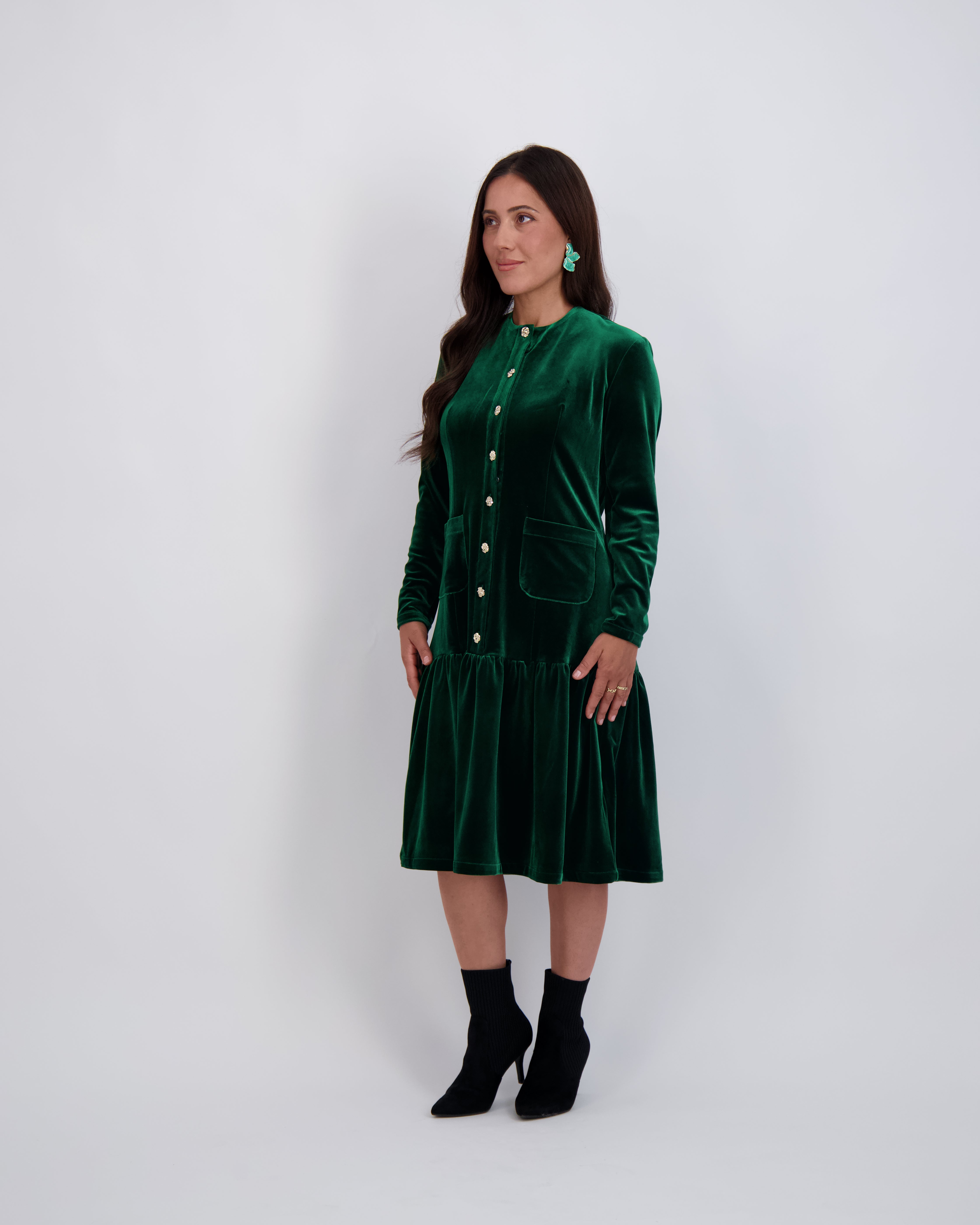 Modest, petite fashion, styled to fit from shoulder to hem.