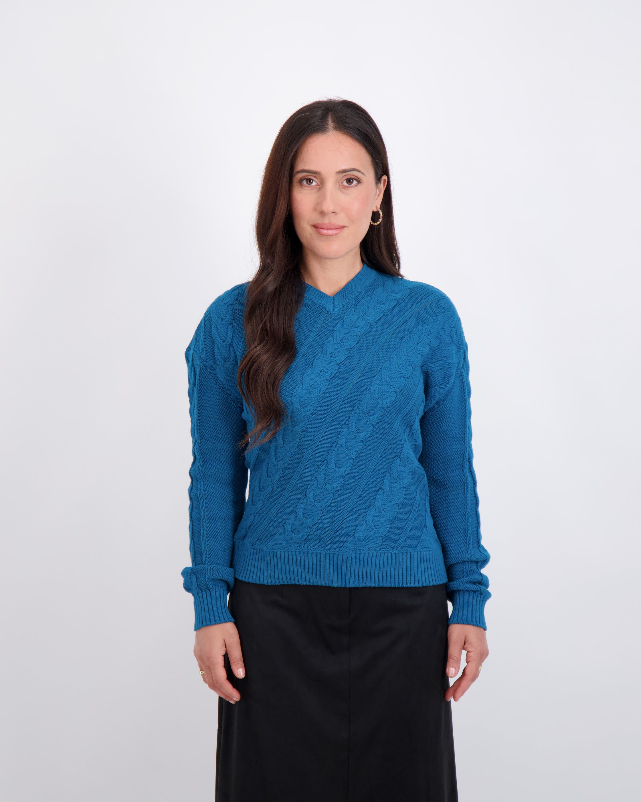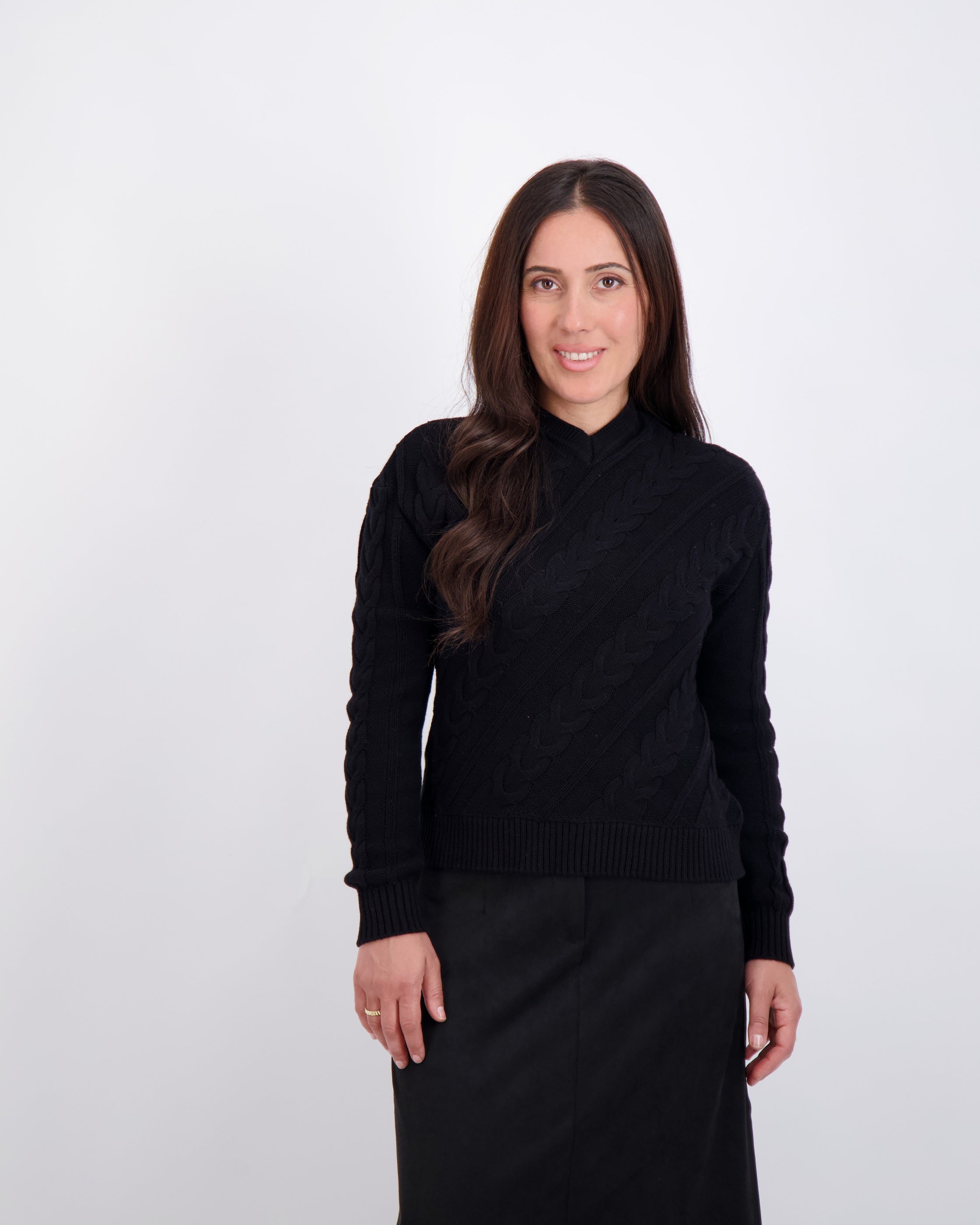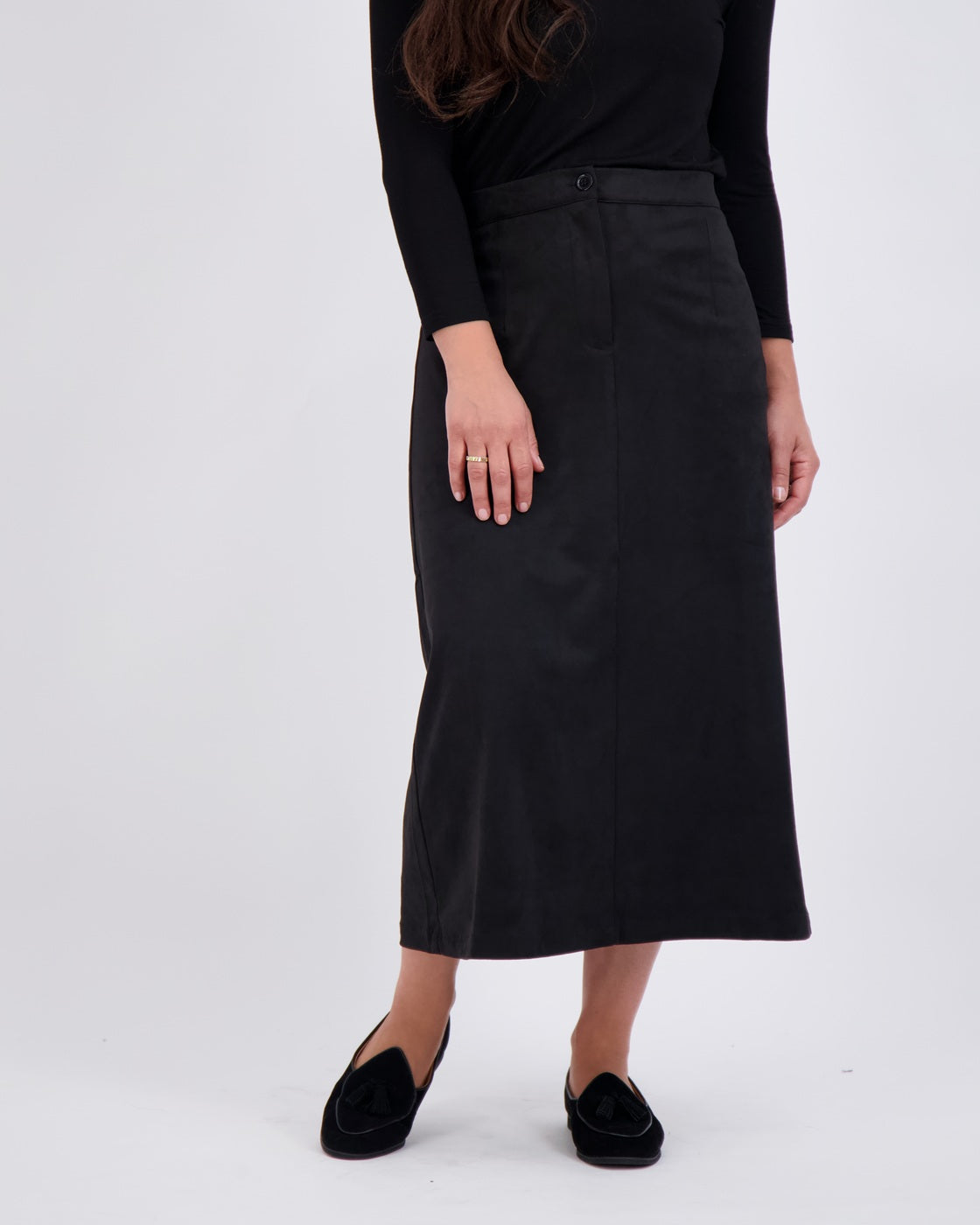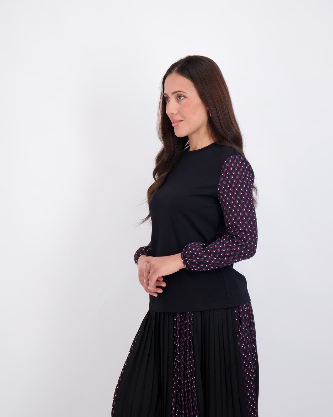 Modest, petite fashion, styled to fit from shoulder to hem.
