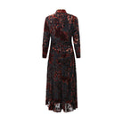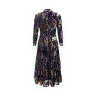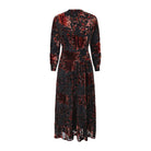 Elevate your evening look with this graceful black dress, embellished with a bold floral design. Detailed with a chic high neckline and long sleeves finished with ruched cuffs, it brings a polished charm to every occasion.